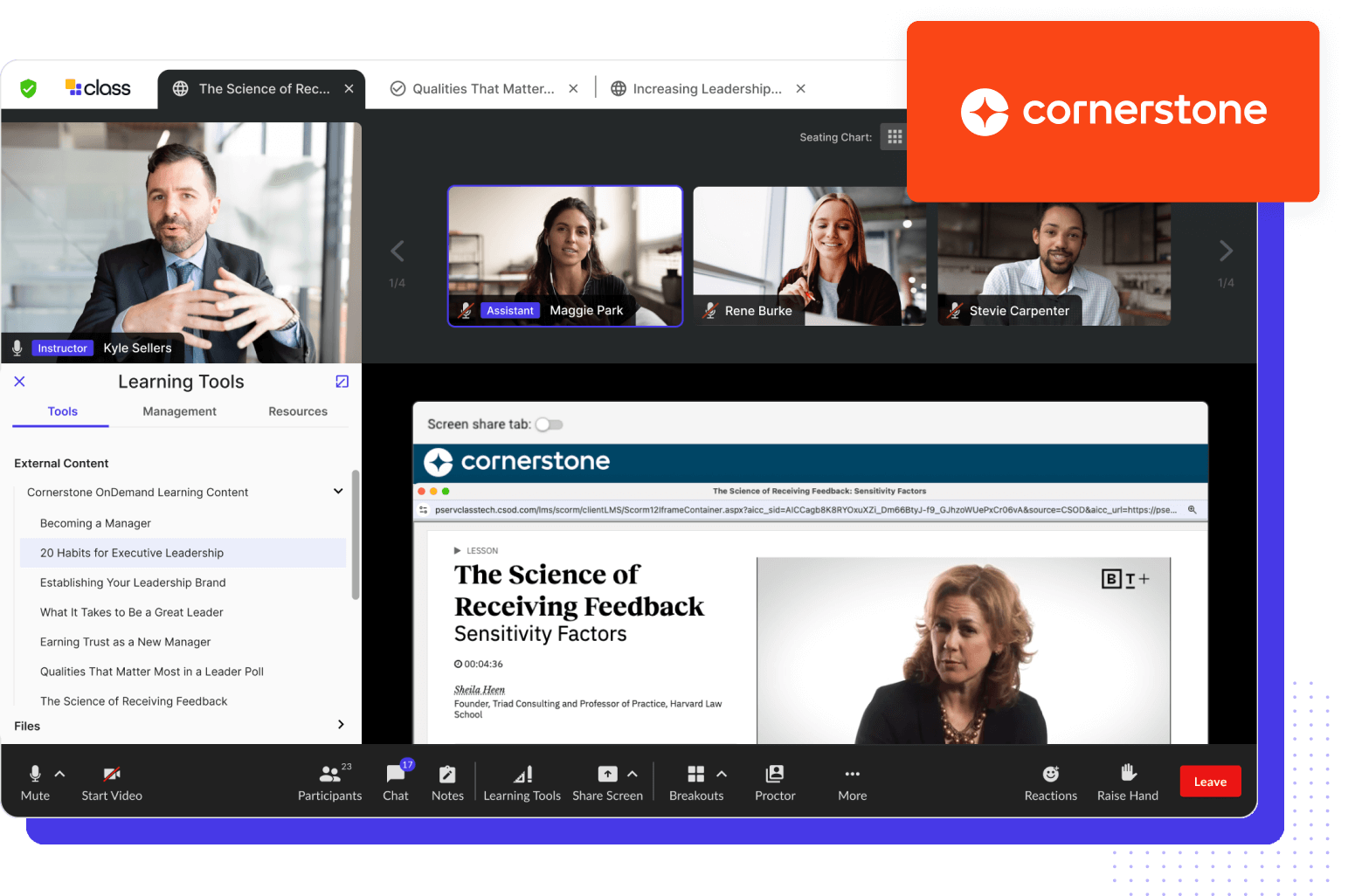 Cornerstone—a leading talent experience platform that empowers workforce development through unified learning, content, and data—integrates seamlessly with Class to elevate your virtual instructor-led training within a robust and agile learning ecosystem.