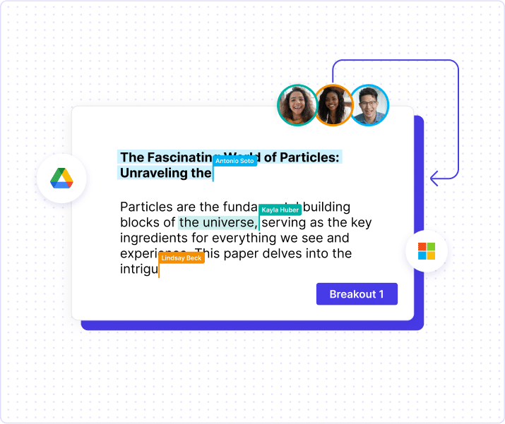 Empower learners to collaborate on Microsoft Office or Google documents, directly within the Class platform. With in-app document collaboration, learners view and edit the same document in real-time. Compile team research, kickstart group projects, or brainstorm—together. With Class, distance doesn’t stop people from working side-by-side.