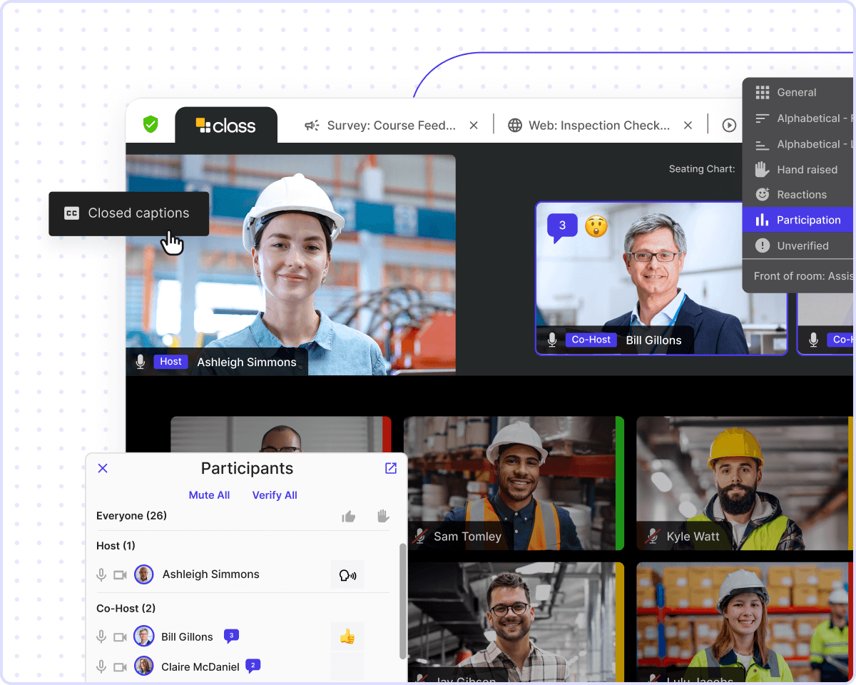 Class is an all-in-one virtual classroom that integrates deeply with your LMS to improve engagement, achieve compliance, and promote safety.