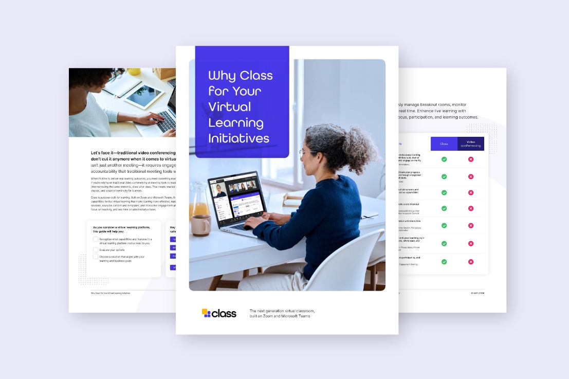 This guide outlines the essential features education leaders should look for in a virtual classroom, with considerations organized by key moments in the learning workflow: before learning, during learning, and after learning. It also explores foundational elements like access, security, and scalability to ensure your solution works for every learner, every time.