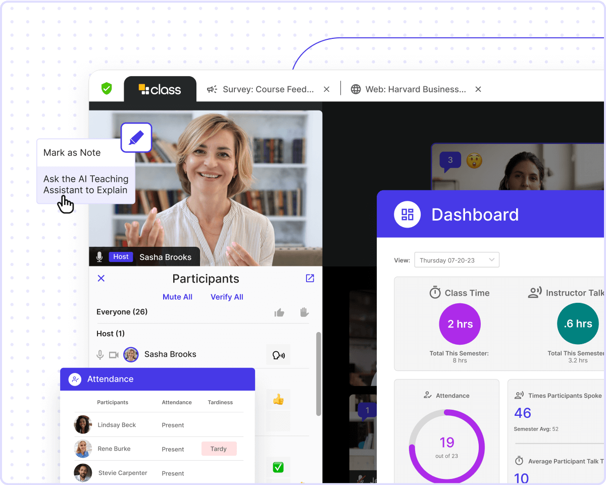 Class seamlessly integrates with Zoom and Microsoft Teams, introducing powerful instructor-led tools that enrich live learning. Elevate your learning with a user-friendly platform that builds upon a familiar foundation.
