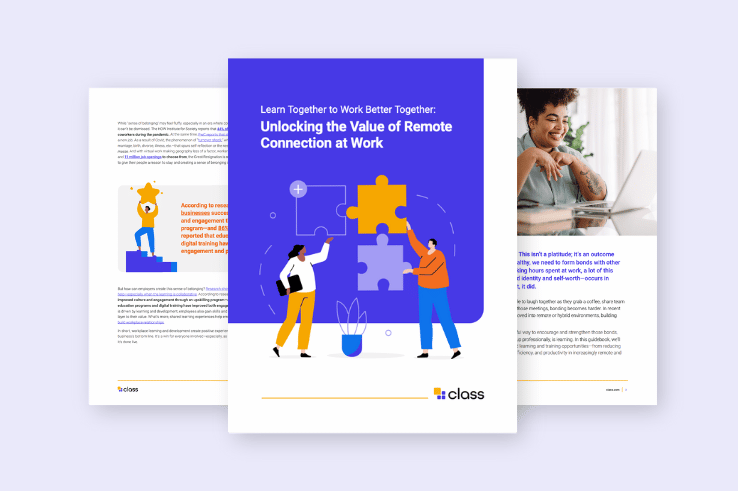When and how you train your workforce can impact not only their performance but the success of your organization. Class brings virtual training tools that make learning and development engaging and collaborative. Collaborate with learners, host live workshops, and lay a path of continuous growth within your organization.