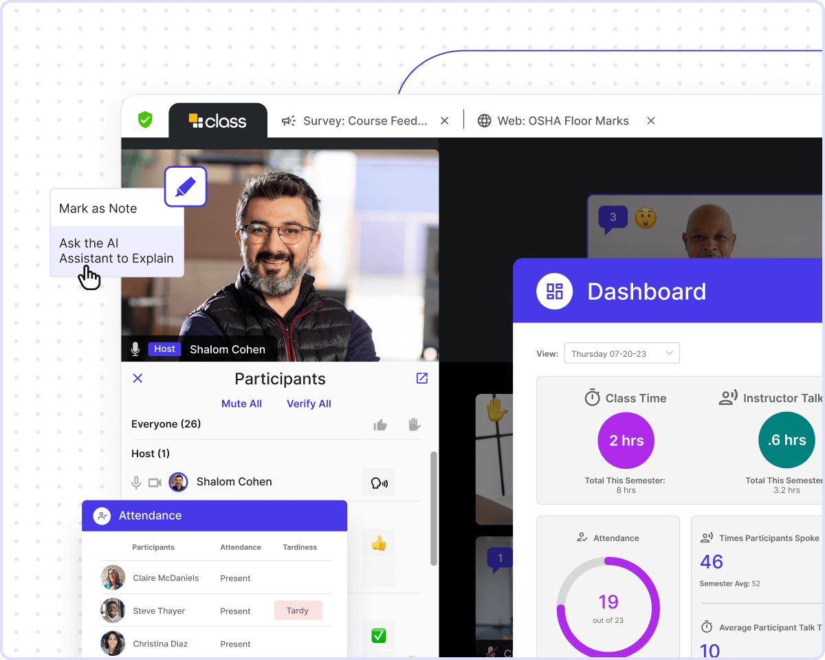 Class seamlessly integrates with Zoom and Microsoft Teams, introducing powerful instructor-led tools that enrich live learning. Elevate your learning with a user-friendly platform that builds upon a familiar foundation.