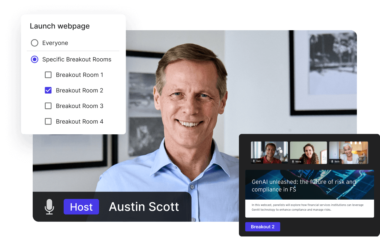 Training and professional development don’t have to be limited to lectures and static PowerPoints. Financial institutions can educate and empower their employees like never before by creating interactive experiences complete with whiteboards, enhanced breakout rooms, and other tools purpose-built for boosting engagement.